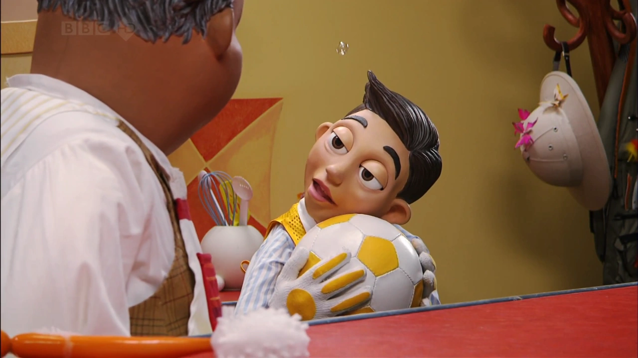 Sportacus wykonuje ćwiczenia na sterowcu. Zapowiada "super ruch" i dostaje od komputera pokładowego talię kart. Tasuje je na różne sposoby i losuje jedną z nich, którą okazuje. Na karcie znajduje się ilustracja piłkarza. Sportacus wykonuje serię ćwiczeń, w czasie których odbija wyobrażaną piłkę: podbicie kolanami i głową, podania oraz strzał. Po ostatnim, zaskakuje go prawdziwa piłka. Łapie ją i kopnięciem z przewrotki umieszcza na swoim miejscu.