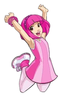 Stephanie is one of the main characters of LazyTown. She is a new arrival in LazyTown. She is an aspiring cheerleader and dancer. DescriptionStephanie is a sweet, optimistic girl who's just moved here to live with her uncle (the Mayor of LazyTown). She's our audience's point of entry - the new arrival, a stranger who's trying to figure out this new place and its crazy ways. Sympathetic and curious, Stephanie likes her new town; it's weird but fun. She's an aspiring dancer, so she appreciates the fantastic moves that Sportacus performs. Stephanie is positive, curious, and able to learn from her mistakes. She sees her life as a grand adventure. One where she can try new things, makes new friends, and sometimes hangs out with a hero! Hey, even when the chips are down, she holds to her motto: "There's always a way!" — LazyTown.com LooksStephanie wears a dress with pink stripes, which are different shades of pink. She also wears a dark pink headband with silver sequins and has several pink bracelets on her right wrist. She also wears blush pink tights, magenta slouch socks, and pink sneakers (and in Energy Book, pink leggings). Besides pink clothing, Stephanie has bright pink hair, which is in the classic bob style. She also has fair skin with slightly blushing cheeks and brown eyes with long, curled eyelashes. Every now and then, Stephanie will change her outfit, but almost all of her outfits are pink. Sometimes Stephanie will wear a light pink hooded sweatshirt with her name across the front in stylized purple lettering.